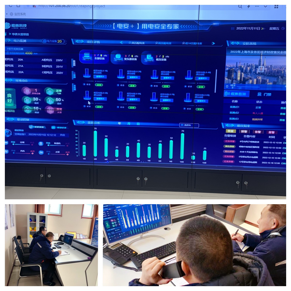 在格林科技,假日值守的高压、弱电运维人员,共有28人。他们说,越是节假日,越容易遇到用电高峰,设备负荷过大、出现故障的可能性也就越高,节假日值班是家常便饭,我们必须通过频繁的日常巡检将隐患缺陷提前排除,确保用户稳定的电力供应。